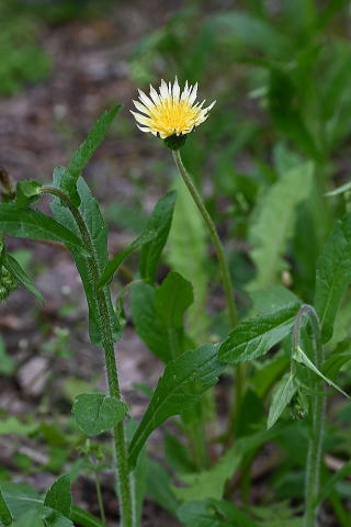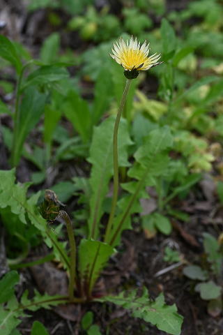 草地や林縁に生えるタンポポで、色が淡いクリーム色をしています。総苞の外片は内片の1/2〜2/3ほどで、角状突起は目立たないです。
