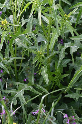 南ヨーロッパ原産の一年草または二年草で、畑の縁などに生えています。。茎は直立して高さは50〜70cmほどになります。果実は細く、長さは5cmくらいです。