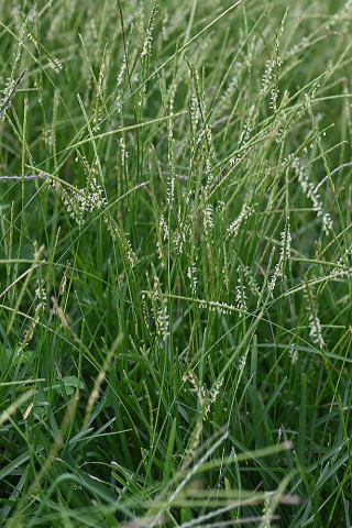 東南アジア原産の多年草。直立した総状花序は長さ30〜40mmほどで、水田の畦を埋め尽くすようにびっしりと生えます。