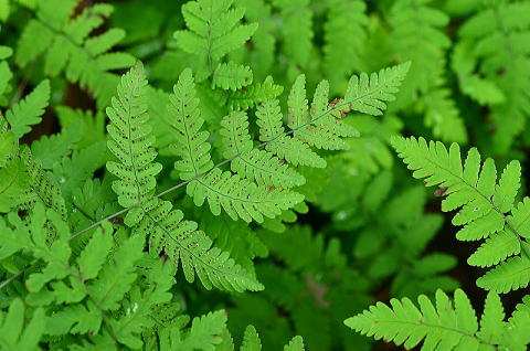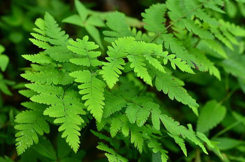 石灰岩地や蛇紋岩地に生える夏緑性シダで、最下羽片が大きいです。全体に柔らかい印象を受けます。