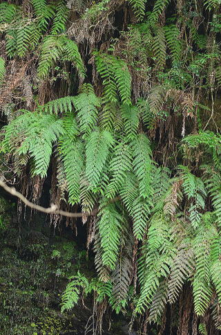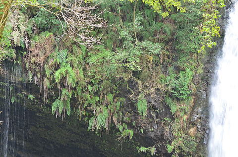 常緑性の大型のシダで、崖などに群生します。別名のジョウレンシダは浄連の滝に由来します。近づけないので、300mmの望遠で撮りました。