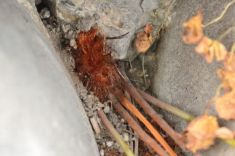 石垣や岸壁などにはえる夏緑性のシダで、名前のとおり、葉柄の基部に赤褐色の鱗片が密生するのが特徴です。羽片は最下のものが最も大きく、包膜はゆがんだ円腎形です。